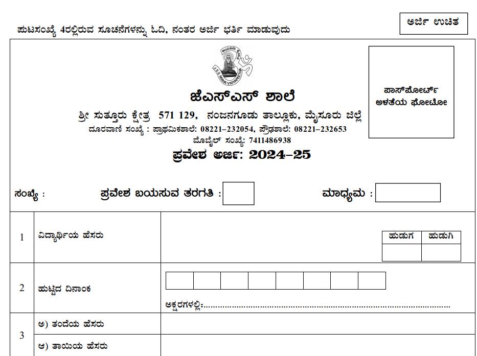 Application for Admissions 2025-26 to JSS Residential School in Suttur – Download Application & Brochure