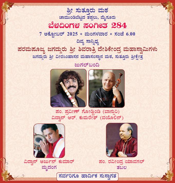 Venue: Sri Suttur Math, Foothills of Chamundi, Mysuru.