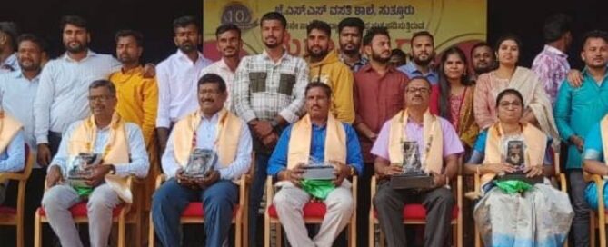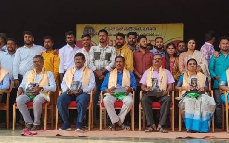 The 2014–15 SSLC batch of Suttur JSS Free Residential School reunited at Suttur to honour their teachers through a memorable Guru Vandana. Felicitated teachers and the alumni are pictured here.