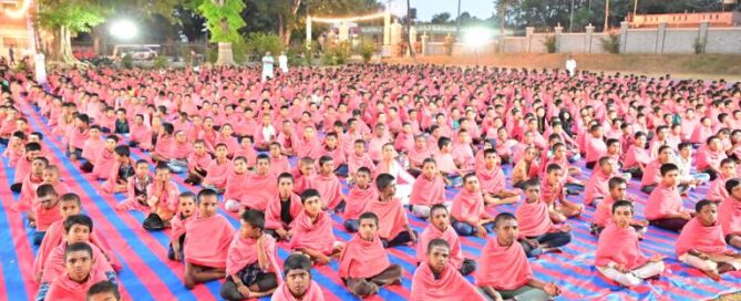 The 2014–15 SSLC batch students of Suttur JSS Free Residential School organized a Guru Vandana programme at Suttur. Shri G. L. Tripurantaka, Coordinating Officer, along with the wardens of the boys’ and girls’ hostels and the alumni, are seen in this picture. More than 4,000 students witnessed this meaningful event.