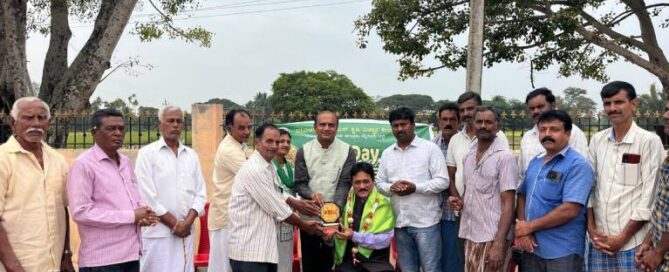 The programme also featured a special recognition of progressive woman farmer Mrs. Gayatri Sai Upendra Babu, who is engaged in organic farming at Nagatwadi village in Nanjangud taluk and sells organic vegetables at the Bogadi farmers’ market. She has developed a terrace garden where she grows flowers and vegetables, and cultivates crops using inputs such as decomposed flowers and their extract, sour buttermilk, and decoctions made from various bitter leaves. Deeply interested in agriculture, she has participated in several agricultural trainings, including beekeeping and organic farming, and is keen to take up beekeeping in the near future. She was honoured on the occasion by the guests and fellow farmers.