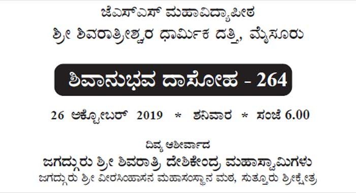 Program: Shivanubhava Dasoha – 264 Date: October 26, 2019, Saturday Time: 6.00 pm Venue: Police Layout, Mysuru View/Download Invitation
