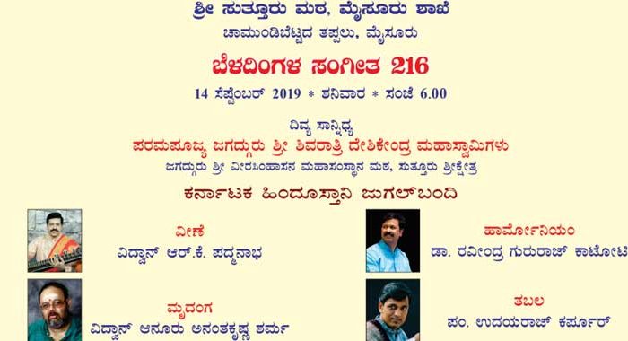 Program: Moonlight Music 216 Date: September 14, 2019, Thursday Time: 6.00 pm Venue: Sri Sutturu Math, Mysuru Branch, Chamundi [...]