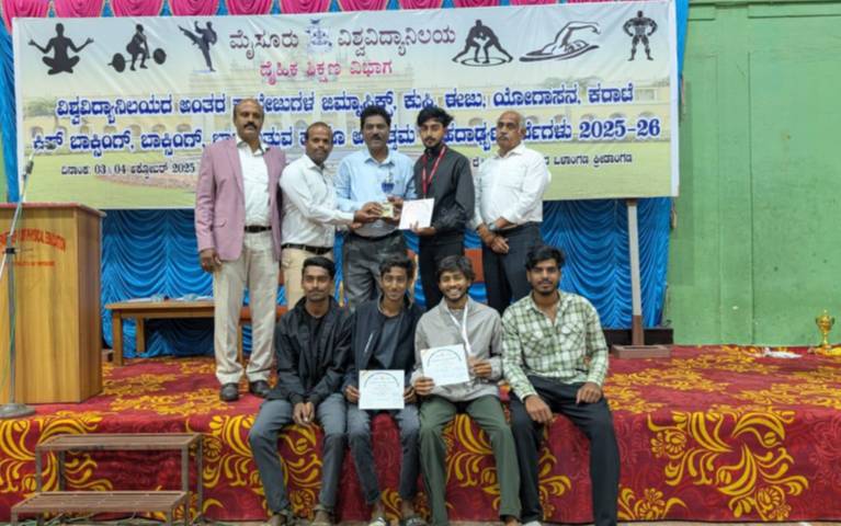 Nanjangud, October 2025: The Physical Education Department of JSS Arts, Commerce and Science College, Nanjangud recorded an impressive performance at the Mysore University Zonal Inter-College Sports Meet, held on 3rd and 4th October 2025. The competitions took place at the Sports Pavilion Indoor Stadium and Yuvaraja College Indoor Stadium, where the college team participated in multiple events and secured notable achievements.