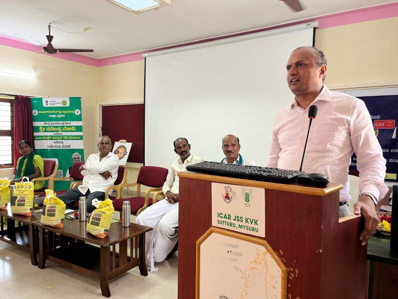 Dr. P. Mahadevu, Assistant Director (Research), University of Agricultural Sciences, Mandya, called on farmers to think like entrepreneurs—to focus on soil health, grow high-quality crops aligned to market demand, and pursue value-addition to realize better profits.