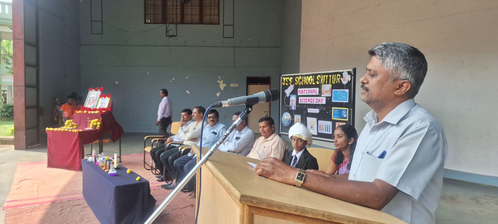 National Science Day was celebrated at Suttur JSS Higher Primary School with enthusiasm and active participation from students and faculty. The program was attended by JSS Assistant Coordinator Shri Veerabhadraiah, heads of various departments, school principals, science teachers, and students.