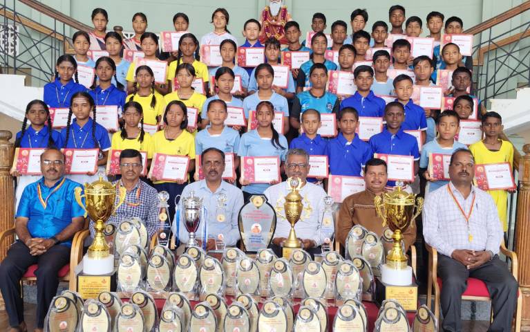Suttur, Nov. 28, 2025: The JSS Higher Primary School, Suttur, emerged victorious by securing the Overall Prize at the three-day JSS Inter-School Sports Meet held at Suttur Srikshetra, organised in memory of His Holiness Jagadguru Dr. Shri Shivaratri Rajendra Mahaswamiji. The boys category witnessed remarkable performances as Kumarn Dhananjit Mythai secured second place in the 100 metres and first place in both long jump and high jump, while Nangwan Odang clinched first place in discus throw and second place in the 200 metres. Sanaiwaangso and Mallikarjun won second and third places respectively in the 400 metres, followed by Janto Wangso and Appa Wangpaas, who finished first and second in the 600 metres race. Pukaaranambaa secured second place in shot put, high jump and discus throw, while Nangsam finished third in shot put. The 4×100 metres relay team led by Sangamesh brought additional glory by securing first place. With a total of 13 points, Kumarn Dhananjit Mythai was declared the Individual Champion and honoured with a medal and cash prizes. In group events, the boys’ team bagged second place in Kabaddi, contributing to the school securing the Team Prize with 52 points.